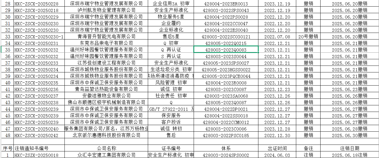 您的位置: 首頁 新聞中心 公司公告 撤銷公告 2025年06月份認證證書撤銷名單
